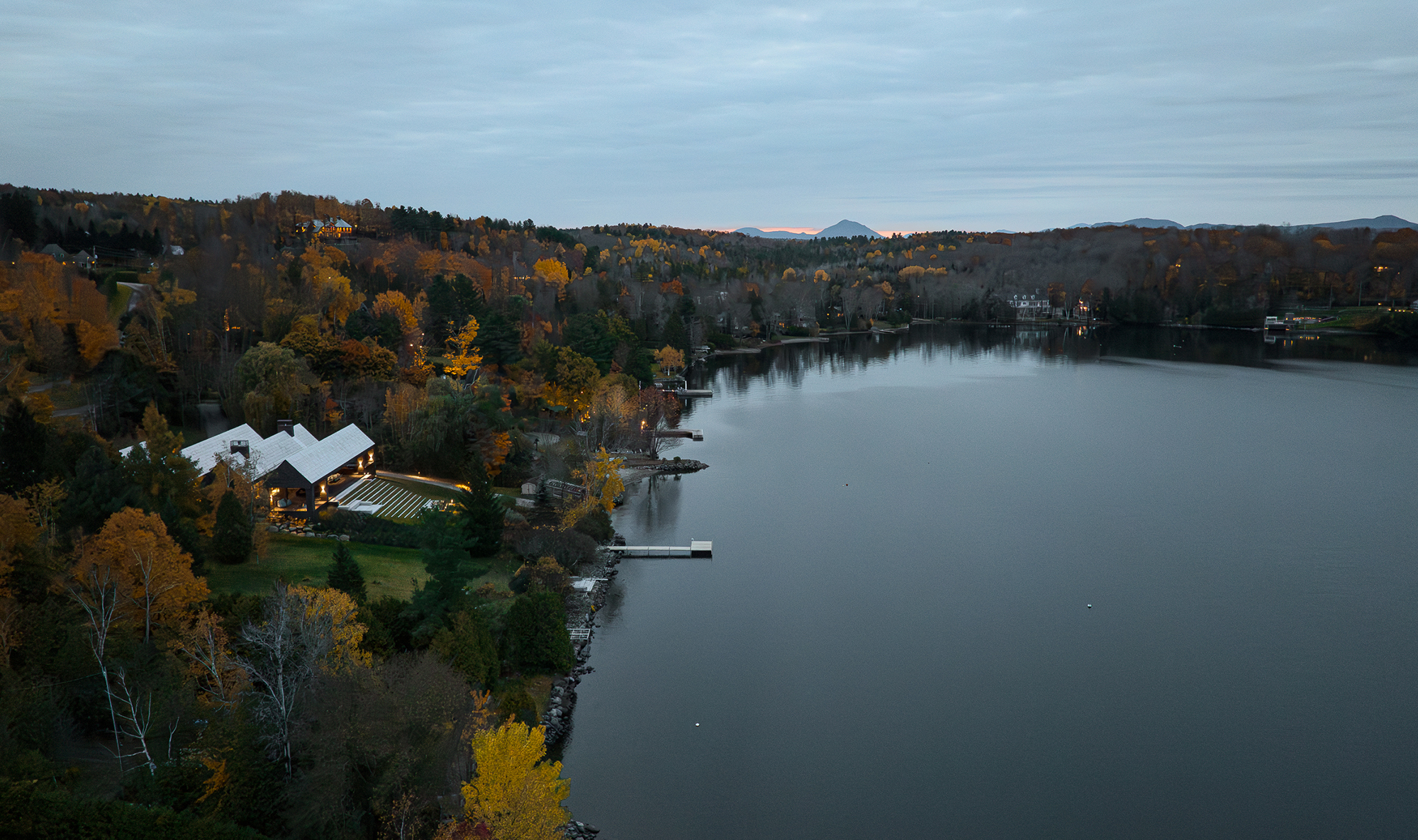 The six-bedroom residence is positioned to capture spectacular sunsets over the tranquil lake. Designed for an art-collecting couple, it offers generous spaces for family gatherings and social events. Inside, various galleries and installations, organically integrated into the architecture, invite the discovery of art. Floor-to-ceiling glass walls frame the ever-changing landscape, creating a dynamic backdrop that shifts with the seasons.