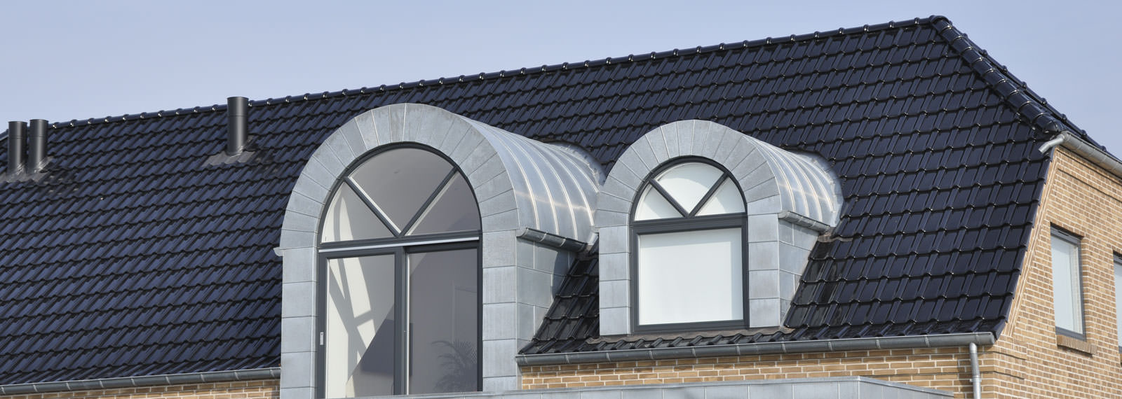 Xenon grey engobed double interlocked roof tile
