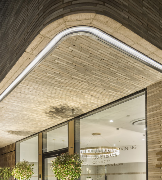 We helped the architects from Simon Bowden Architects create special bricks that enabled the suitable entrance for the lavish building in Art Deco style.