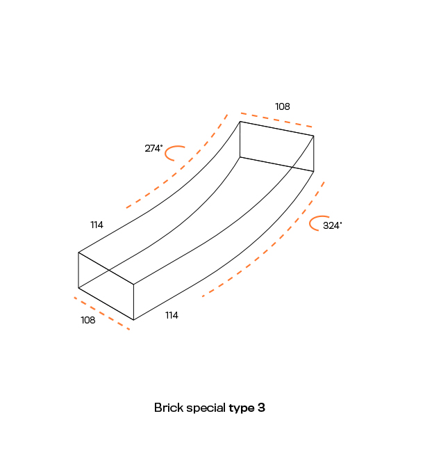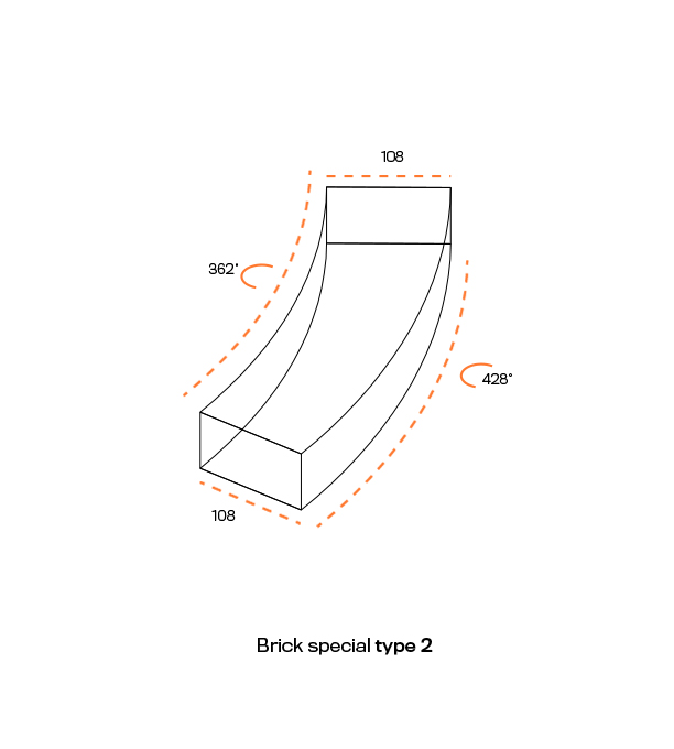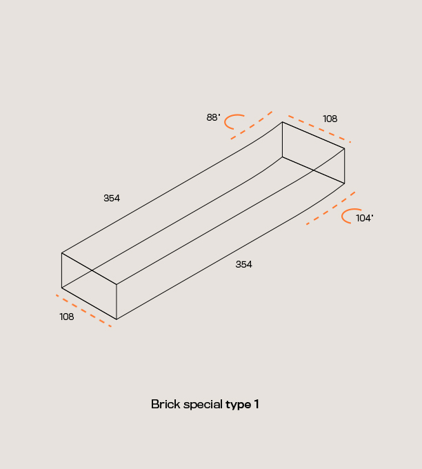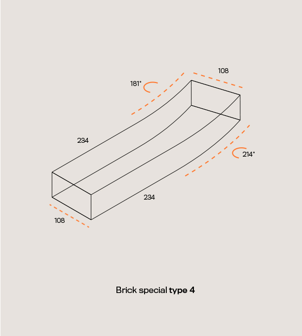 Bricks are not necessarily rectangular squares. Today, bricks can have any shape, size and format. For that reason, we offer specially made bricks to suit and facilitate your project. Based on architect and developer requirements, we find the optimal method of production for the individual project, e.g. 3D printed moulds or by cutting and/or gluing bricks together.