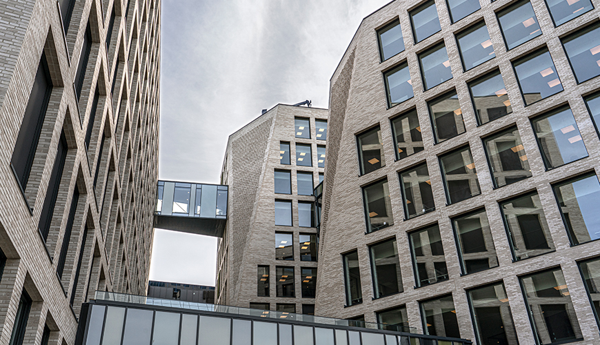 Fyrstikkalleen in Oslo is an ambitious and sustainable project with three sculptural office buildings, that creates special light as well as a significant but harmonic welcome to the domicile.