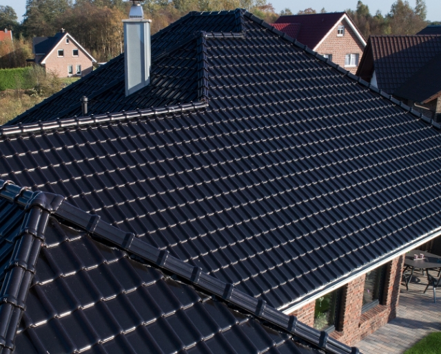 Deze tijdloos moderne vlakke dakpan TIEFA XL TOP® wordt gekenmerkt door zijn zachte welving en harmonisch rustige, duidelijk gestructureerde oppervlakte-effect. Het flexibele middenformaat van de populaire TIEFA XL TOP® is bovendien bijzonder economisch en universeel toepasbaar - en niet alleen voor platte hellende daken.